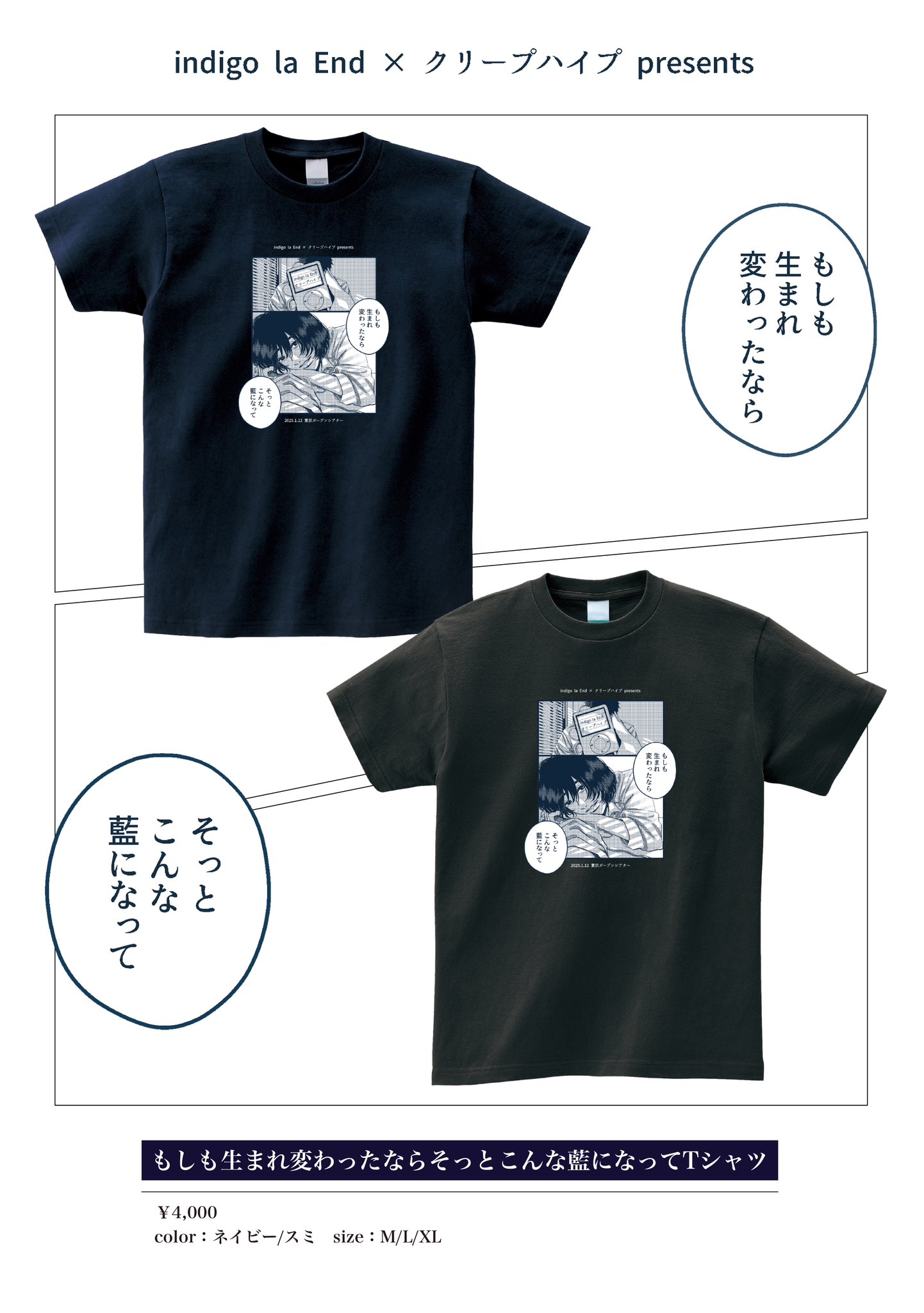 | 商品の特徴 | indigo la End on X: 。indigo la End】 馳せ合いTシャツ (SENDAI ver.) - e+Shop。2025年最新】クリープハイプ tシャツ indigoの人気アイテム。indigo la End × クリープハイプ presents「もしも生まれ変わったならそっとこんな藍になって」Tシャツ。クリープハイプオンラインショップ。新品未開封です。。色:ネイビーサイズ:XLindigo la Endクリープハイプもしも生まれ変わったならそっとこんな藍になってクリープインディゴ折り畳んでの発送とします。Eve UnderBlue くじ ぬいぐるみ。 | ||