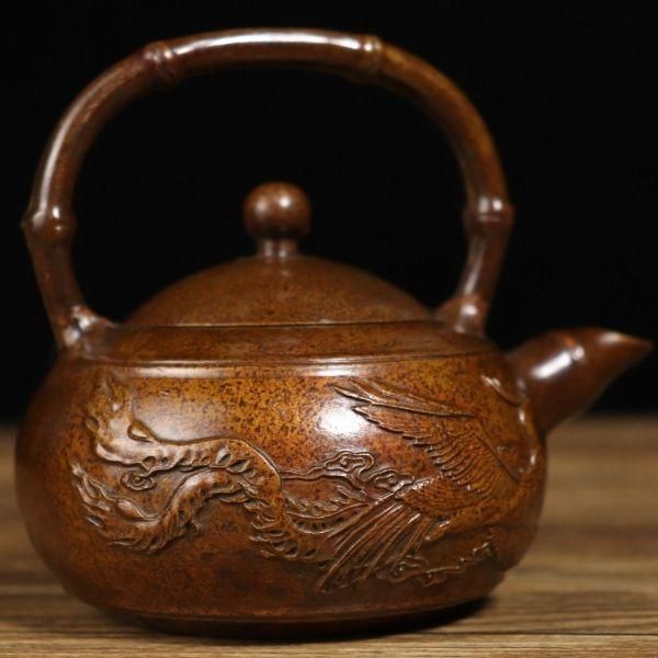 - 美術品・アンティーク・コレクション > 工芸品 > 銅 細工 茶道具 浮彫り 福禄茶壺 提梁銅壺 水徳利 工芸品 美術品 置物 銅壺 提梁龍鳳呈祥茶壺 酒壺 茶道具 装飾品 工芸品 美術品 置物