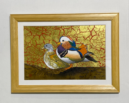 | メーカー | 超美品!値下げ交渉あり。金箔を押した黄色い小鳥 アクリル画 絵画 オシドリ(金彩、アクリル画)原画 |