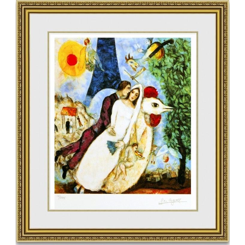 - 美術品・アンティーク・コレクション > 絵画 > 巨匠作品 芸術美術 絵画 フレーム付 アンティーク 激安最終赤字大処分 複製通販 シャガール エッフェル塔の花嫁、花婿 額縁付き : 絵画